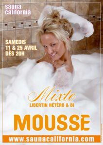 La Mousse Mixte est une soirée festive, coquine, sexy, disco, dédiée aux couples, femmes et hommes, hétéros ou bi. Un des must du Sauna California !!