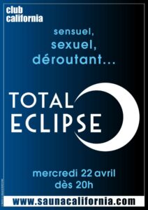 Sauna (serviette) jusqu'à 20h. Puis passage en Total Eclipse... Sensuel, sexuel, déroutant...