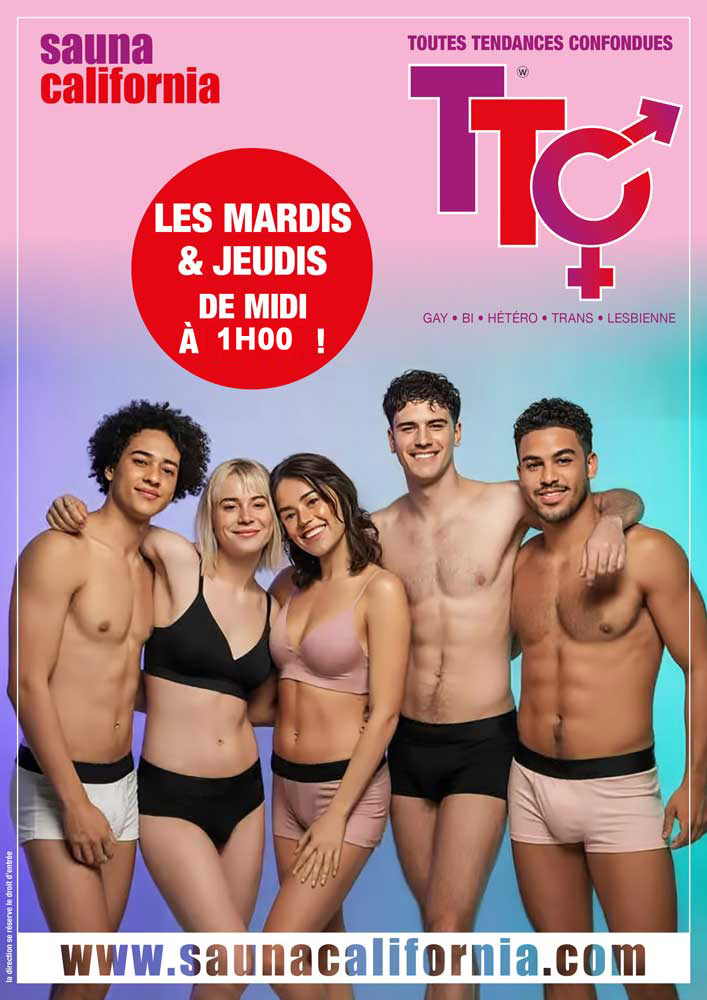 Que tu sois gay, hétéro, bi, trans, lesbienne, tu es le ou la bienvenu(e) tous les jeudis au California !!